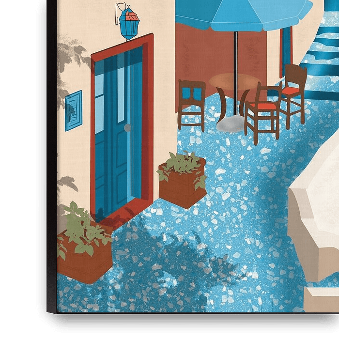 Do you also dream of the warm sun on your face, the soothing sound of the lapping sea and the scent of blooming flowers? With this beautiful art print, "Spring in Santorini", you will bring the undeniable charm of the Greek islands straight to your own living room, bedroom or office.
