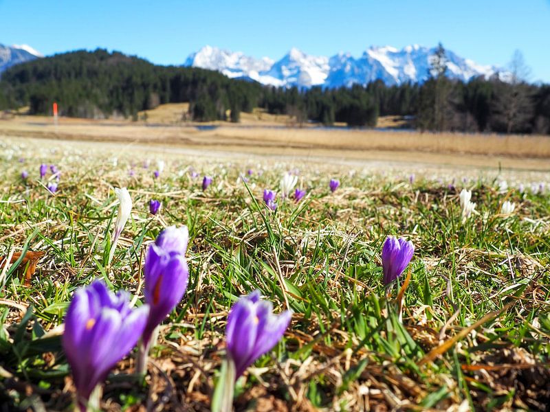 About ‘Spring magic at Lake Geroldsee - delicate crocus blossoms, calm water and an impressive mountain backdrop. A romantic Alpine motif full of colour and tranquillity.’ by Miriam Schwarzfischer Fotografie