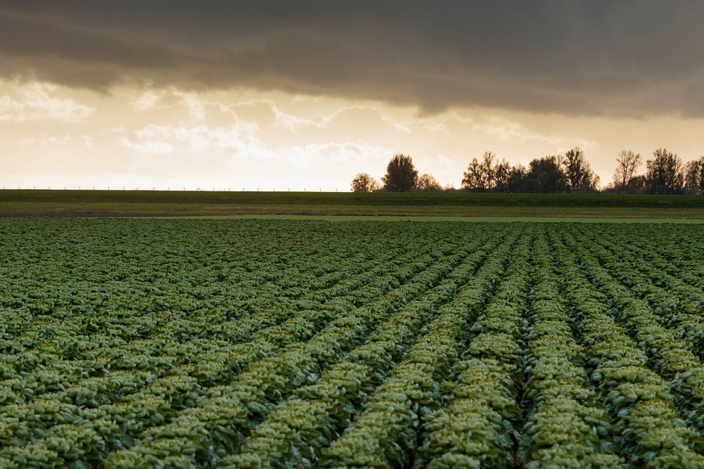 Sprouts and windmills in the Flevoland landscape by Rene den Engelsman