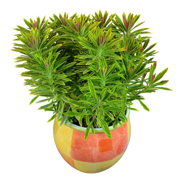 Spurge plant in a flower pot on a white background