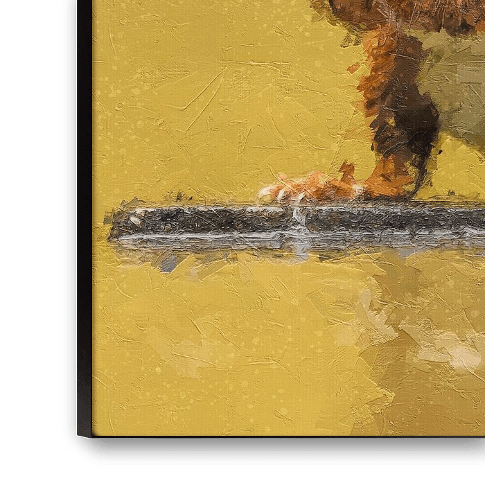 Thanks to the paint-like texture, this picture looks like a classic oil painting with a modern twist. Each brush-like stroke contributes to a sense of movement and playfulness. This work is a perfect choice for animal lovers, nature lovers and anyone looking for a calm, friendly accent in their home, office or practice space.