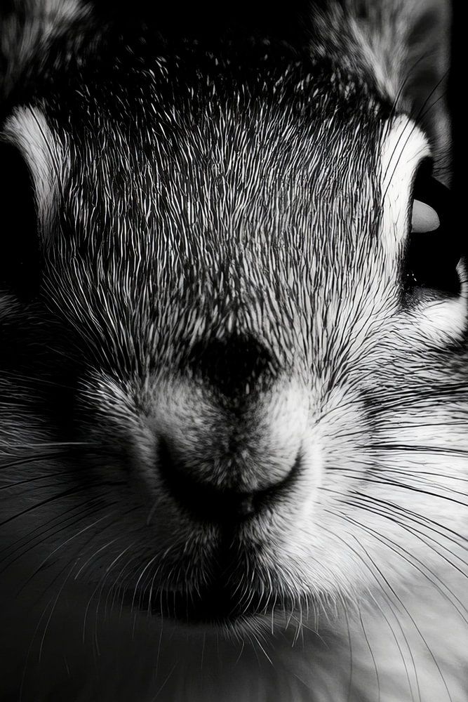 A captivating interplay of light and shadow frames the expressive gaze of an inquisitive rodent. The monochrome image emphasises the intricate details and gives the picture a fascinating depth. Ideal for the living room, it attracts everyone's attention and creates an atmosphere of closeness to nature and curiosity.