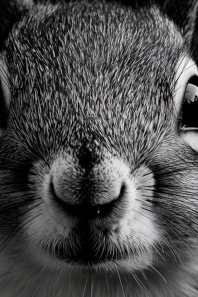 A fascinating portrait of a small rodent that immediately catches the eye with its large, expressive eyes and fine facial features. The high-contrast black and white design gives the picture an elegant touch. Perfect for the living room, it brings a playful yet stylish atmosphere to any room.
