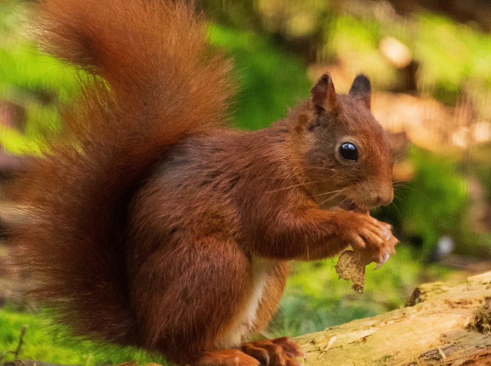 The Squirrel, recognizable by its long tail and its beautiful red coat. Shoot over the ground and through the trees in search of nuts