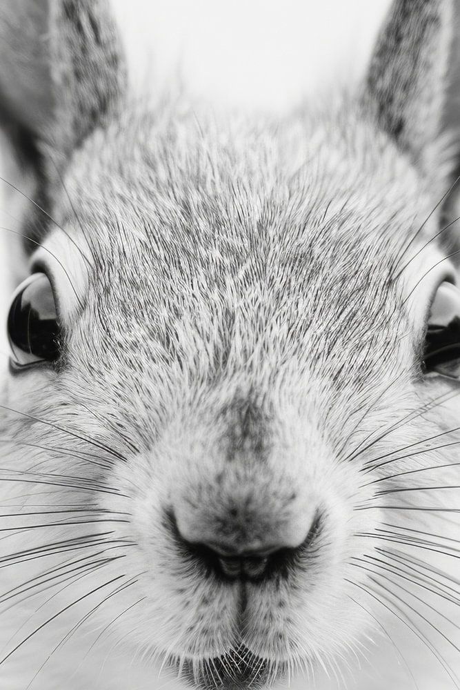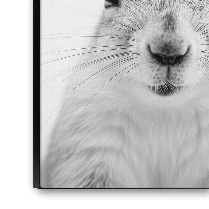 Enjoy the lively energy of this playful squirrel in a fascinating black and white photograph. The fine details of the fluffy fur and the curious expression in his eyes capture the lively nature of this forest dweller. Perfect for living rooms, offices or children's rooms, this artwork brings the cheerful side of nature into your home. A wonderful gift for nature lovers and art enthusiasts who appreciate the charming world of wildlife.