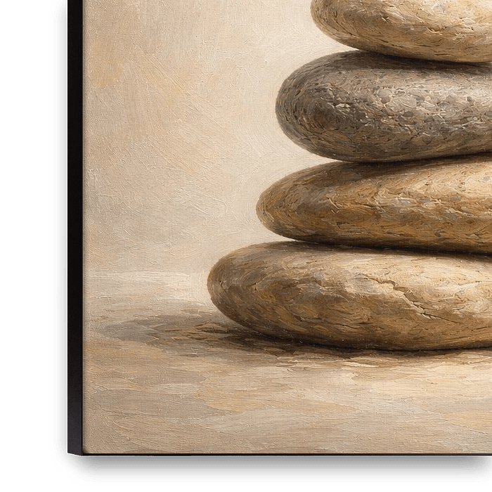 A vertical stack of stones in impasto style, expressing harmony, stability, and meditative balance.