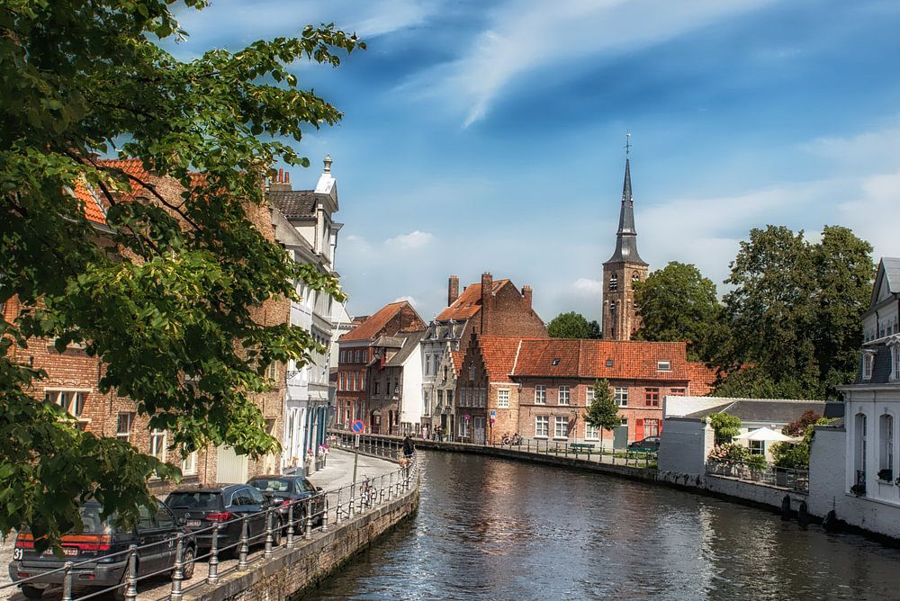 Mooie stad Brugge in Belgie met uitzicht vanuit de van brug op de Hoogstraat