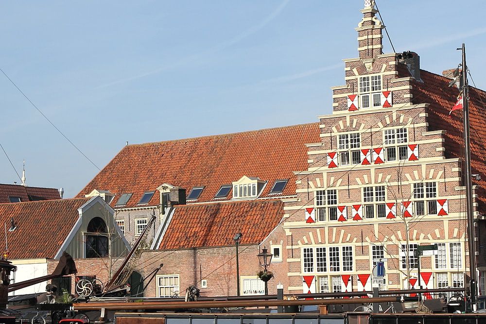 The Stadstimmerwerf in Leiden at the Galgewater was built in 1612 to a design by the then city carpenter Jan Ottensz. by Seyst. The city carpenter lived and worked in this building. The richly decorated stepladder on the right-hand wing was his house, while the workshop was located more to the left. Source: Wikipedia