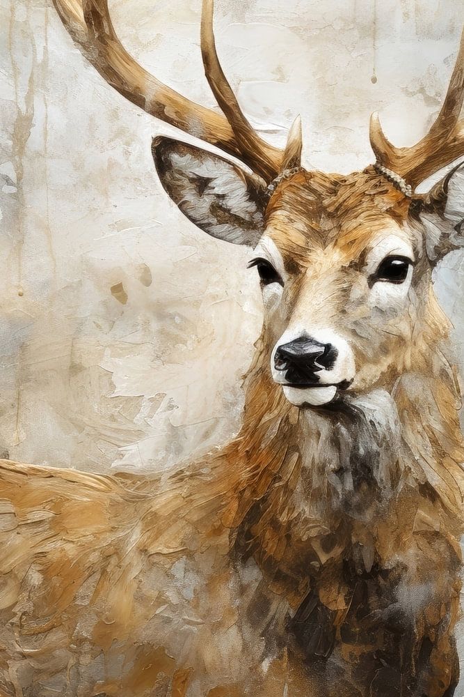 Buy this painting Stag in warm earthy colours. by ARTemberaubend as a reproduction on canvas, ArtFrame, poster and wallpaper, printed on demand in high quality.
