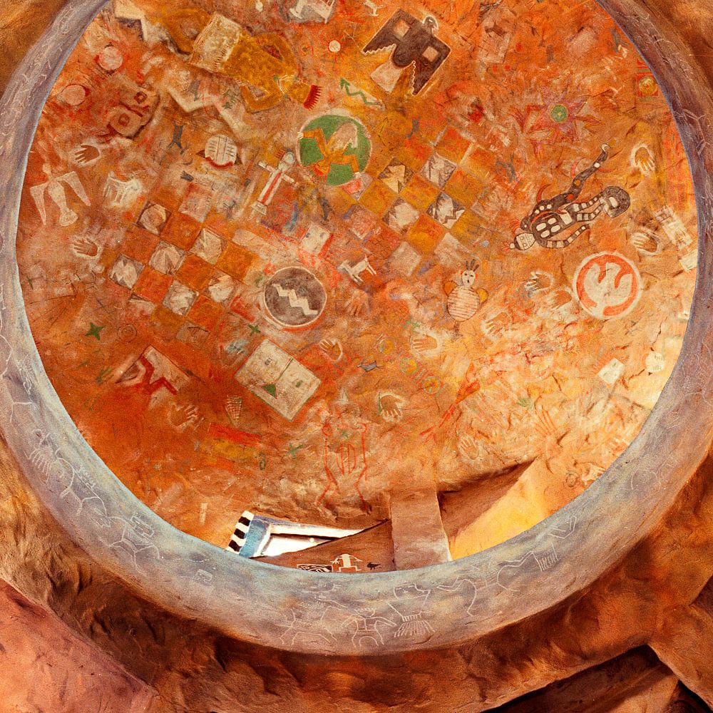 Here I photographed the ceiling of a stairwell. There are some kind of indian signs on the ceiling that are meant as decoration. The special construction of the staircase gives a nice effect.