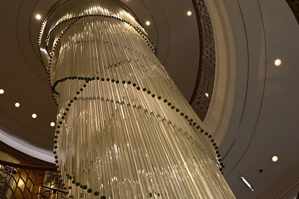 Stariway to heaven. Photo taken in Paris at a jewellery store (with permission). In the middle of the stairs hangs a beautiful chandelier.