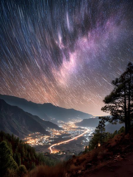 Star Trails Over Mountain Valley