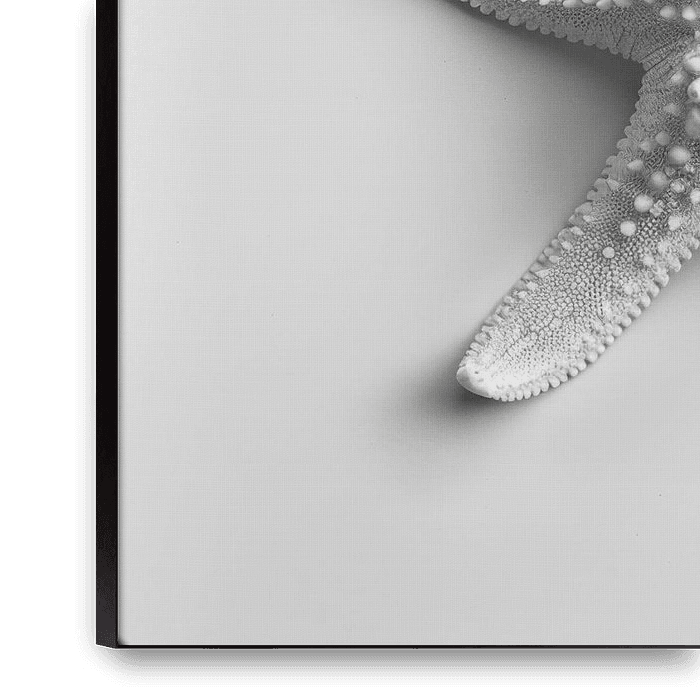 This stunning black and white photograph shows the fascinating structure and symmetry of a starfish. The detailed shot brings out the textured surface and unique shapes of the starfish, reflecting the grace and tranquillity of marine life. Perfect for nature lovers and those who want to integrate maritime elegance into their living…