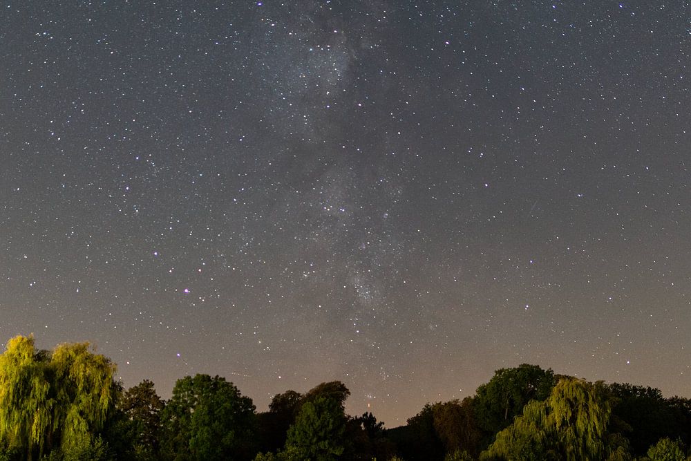 It was one of those clear nights when the world seems to stand still. My journey took me to Bendeleben, a small village in Thuringia, nestled in rolling hills. There, in the castle park with its enchanted pond, a very special scene awaited me: the Milky Way stretched like a luminous arc across the night sky, while its reflection delicately appeared on the surface of the water.