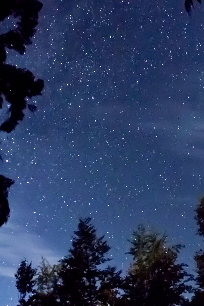 Buy this landscape artwork Starry sky over the branches of trees and mountains, night landscape. Tourism in the Caucasus in Abk by Michael Semenov on canvas, ArtFrame, poster and wallpaper, printed on demand in high quality.