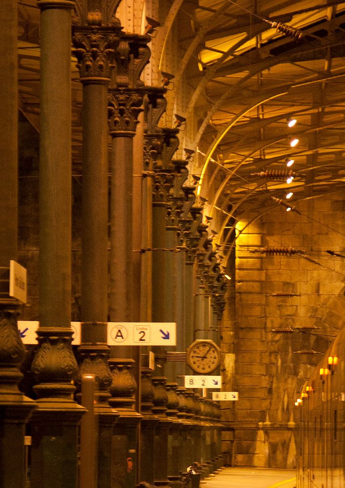 Een leeg perron in het mooie oude treinstation van Porto.