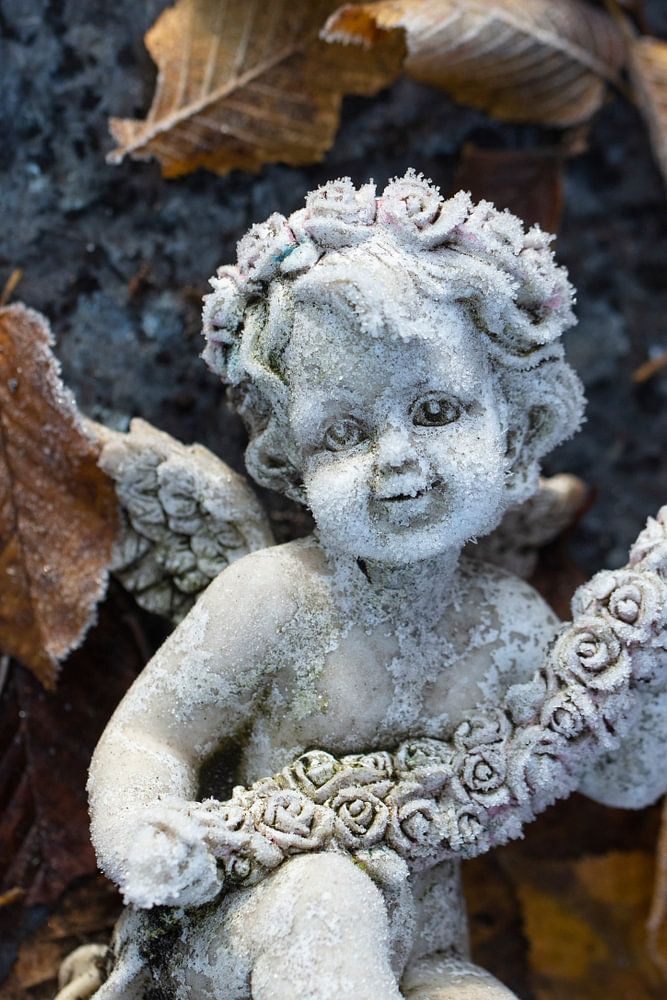 Statue of angel with roses in winter by Peter de Kievith Fotografie