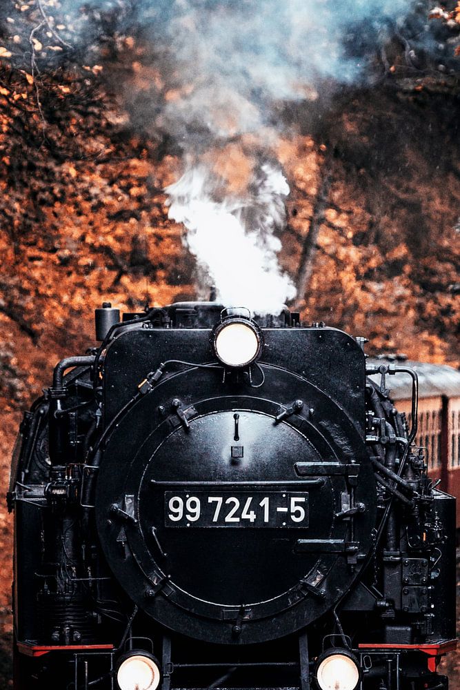 Steam locomotive in the autumn forest by Oliver Henze