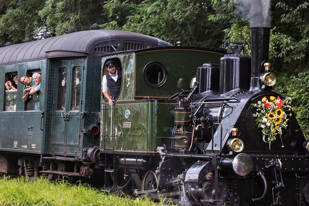 Steam locomotive Anna departs from Wijlre station on the 1st trip after a thorough paint job