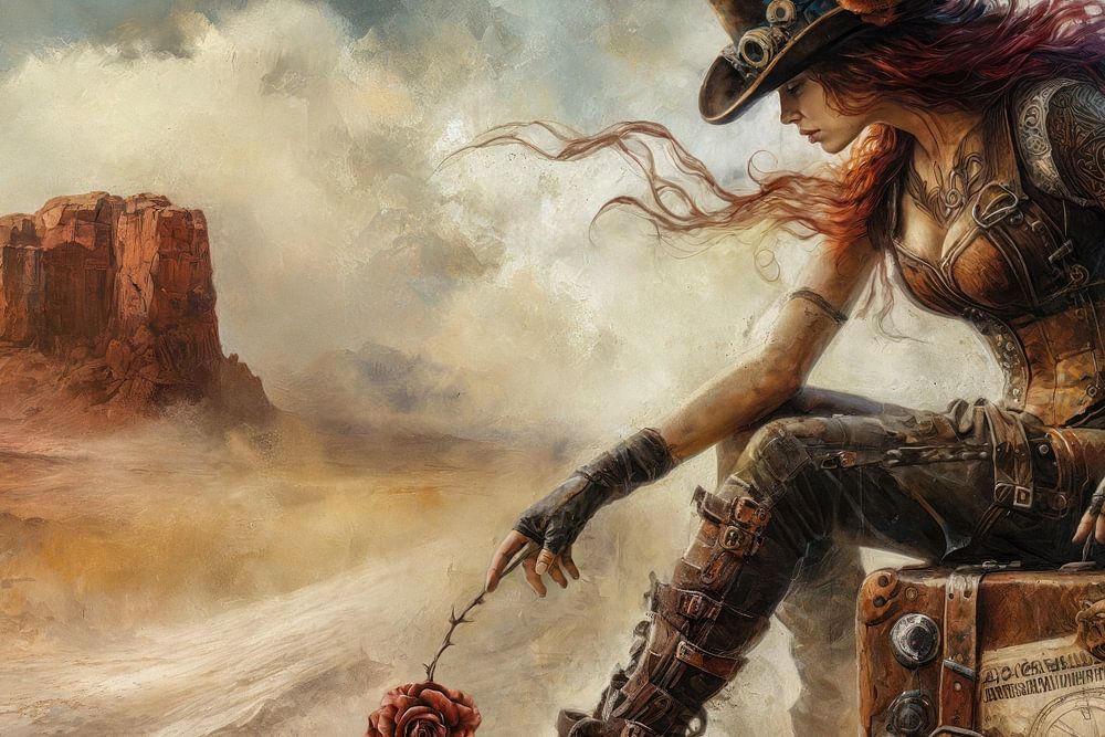 Buy this digital art artwork Steampunk lady on the road by Silvio Schoisswohl as a reproduction on canvas, ArtFrame, poster and wallpaper, printed on demand in high quality.