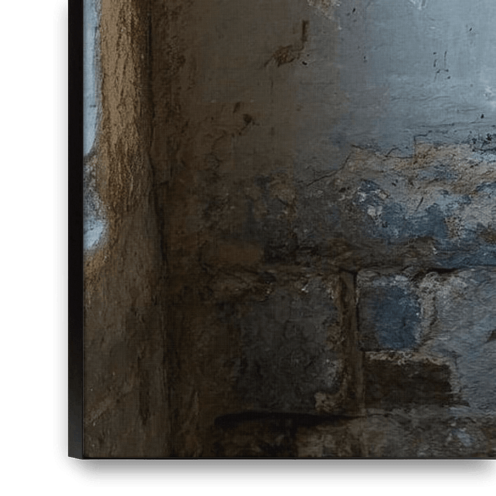 A rustic steering wheel hangs majestically from a weathered wall, illuminated by soft rays of light that emphasise the texture of the old stones. This maritime presence evokes nostalgic memories of distant shores and adventures on the high seas. Ideal for a living room wall, it adds a sense of history and character to the room.