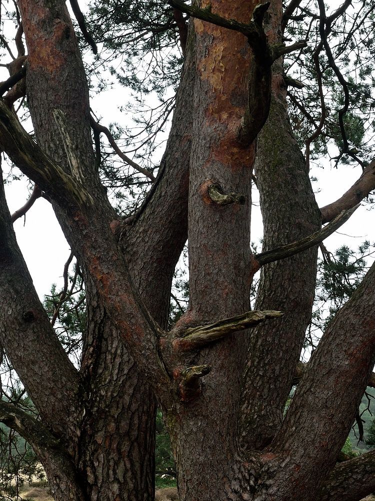 I took this photo of a Scots pine on the Hulshorsterzand between Harderwijk and Nunspeet in the Veluwe. On the Hulshorsterzand, there are a number of Scots pines with karakestic trunks, as they have the room to expand in width. As you can see, this Scots pine has several trunks that are already branching low to the ground as well. For…