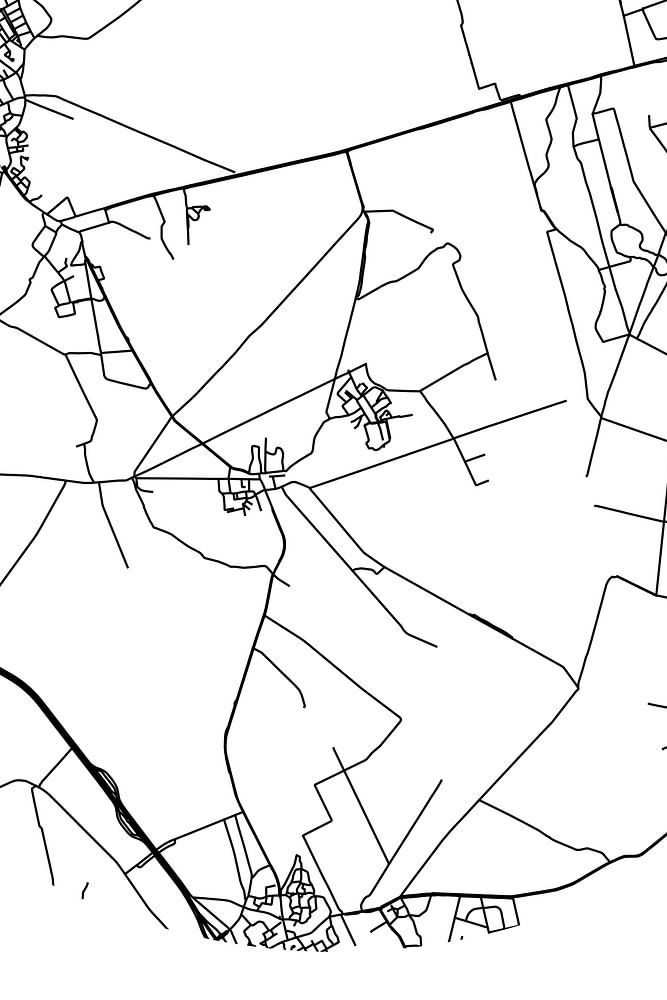 Black and white map, street map or street plan of Sterksel. Sterksel is located in the municipality of Heeze-Leende, province of North Brabant. On the city map all public roads in Sterksel are included. Furthermore, the map features the coordinates of the center of Sterksel.