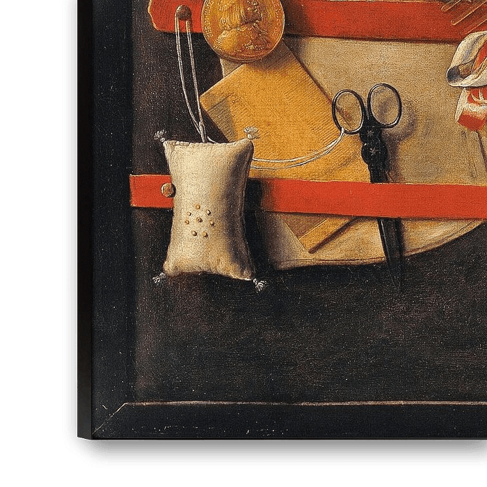 Trompe-l'oeil Still Life - A letter rack holding various objects, less than five centimetres deep. Barely distinguishable from the real thing. Van Hoogstraten managed to fool the Emperor Ferdinand III with a trompe-l’oeil like this, earning him a medal of honour. This medal is prominently displayed here, as is a note stating where and when the work was painted: London, 20 January 1664.