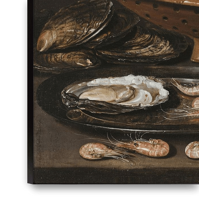 Buy Still Life of Fish and Cat, Clara Peeters as a reproduction on canvas, ArtFrame, poster and wallpaper, printed on demand in high quality.