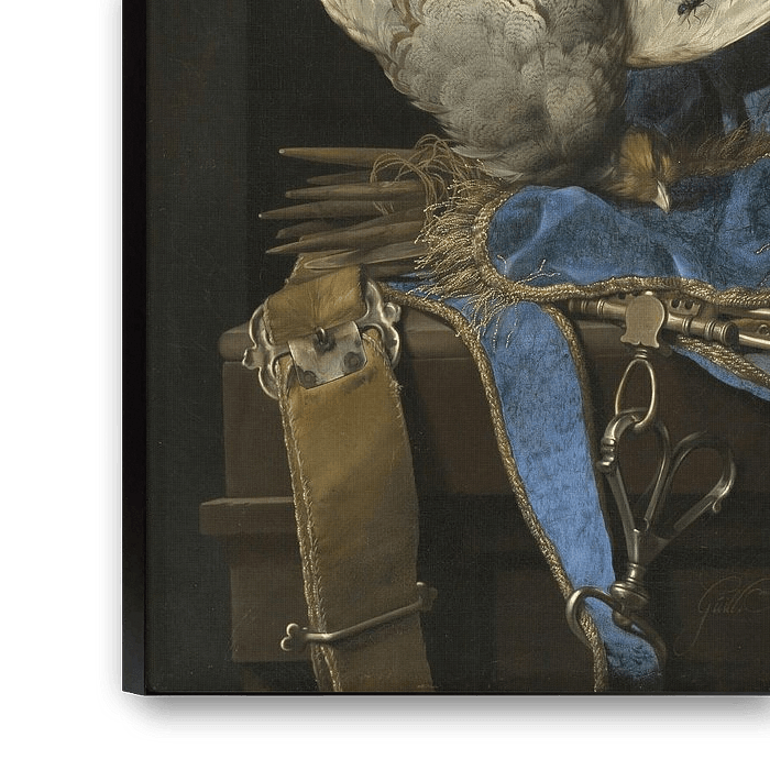 Buy Still-Life with Hunting Equipment and Dead Birds, Willem van Aelst as a reproduction on canvas, ArtFrame, poster and wallpaper, printed on demand in high quality.