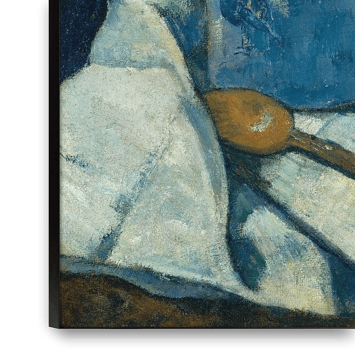 One of Gauguin’s most treasured possessions was a painting by Cézanne, Still Life with Fruit Dish (1879–80, now Museum of Modern Art, New York ), which he emulates in this picture. Within a similarly compressed space, Gauguin substituted mangoes for Cézanne’s apples and a Tahitian-style printed cloth for a French floral wallpaper design. One significant departure is the human figure at the upper right, glimpsed through a door or window. The year after he completed this work, Gauguin’s finances were so dire that he arranged for the sale of his prized Cézanne.
