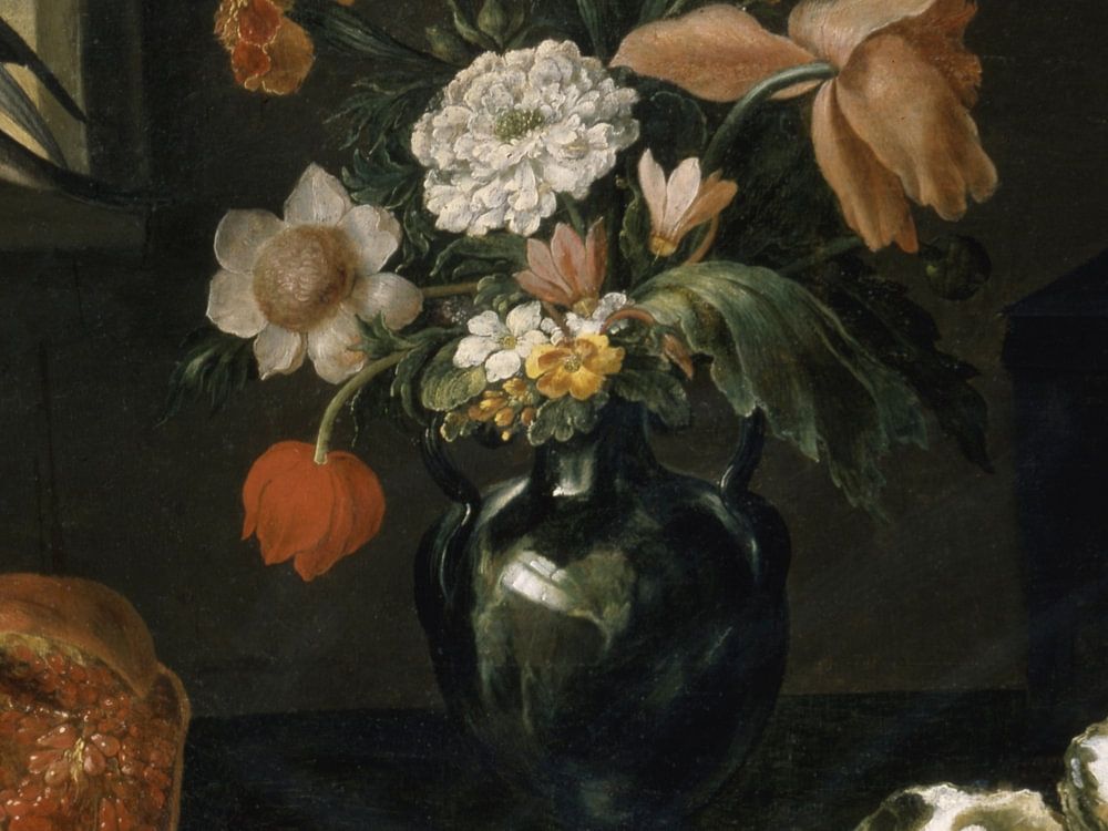 Queen Elizabeth of Bourbon Flower arrangement, Jan Davidsz. de Heem