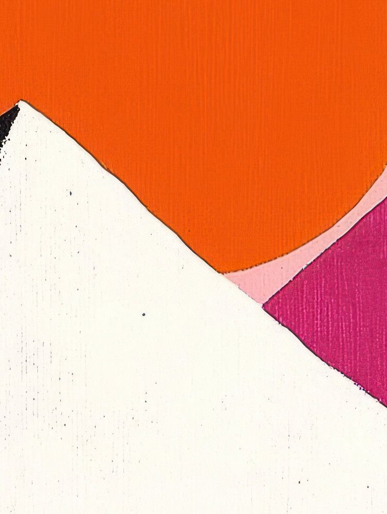 A minimal mountain landscape composition in which colour plays the leading role. The sun glows like a sensory patch of warmth and contrast against a soft pink sky. The mountain peaks are sleek and graphic, but breathe silence and a kind of tender monumentality. With this work, I want to evoke a sense of stillness - as if you are momentarily floating above the world in a dream of colour and simplicity.