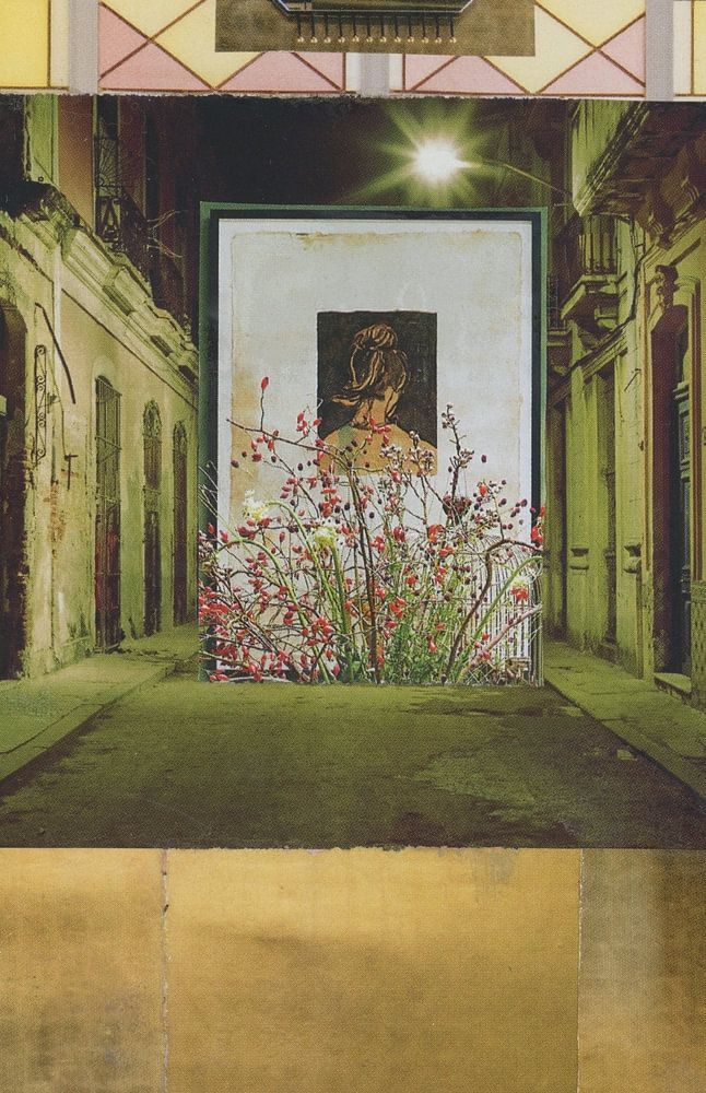 In this collage, you feel as if you are walking into a space where there is a serene calm like the end of a corridor or a bathroom wall. A collage where peace and space can be found and where you can dream away to sunny times.