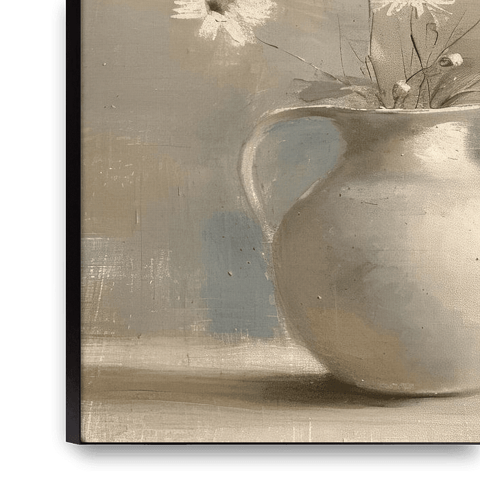 Japandi style still life in white. A particularly atmospheric and minimalist still life with white flowers. Choose the size and material for this work and make it your own.