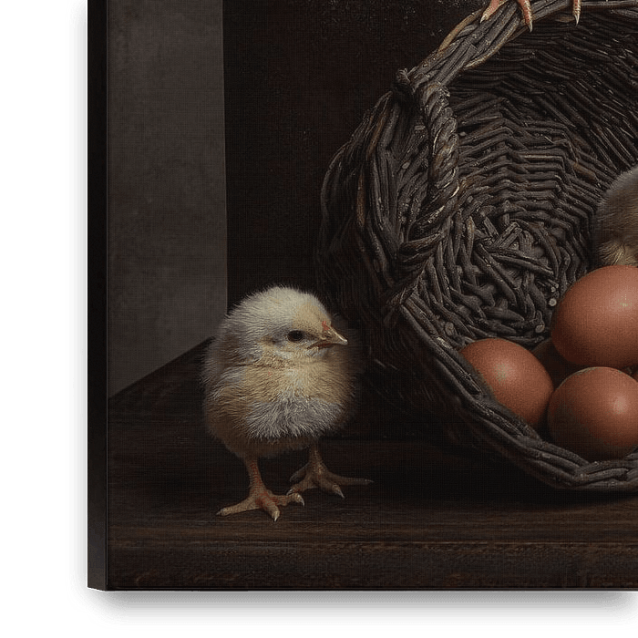 Buy this still life Still life of a chicken with her chicks by Elles Rijsdijk on canvas, ArtFrame, poster and wallpaper, printed on demand in high quality