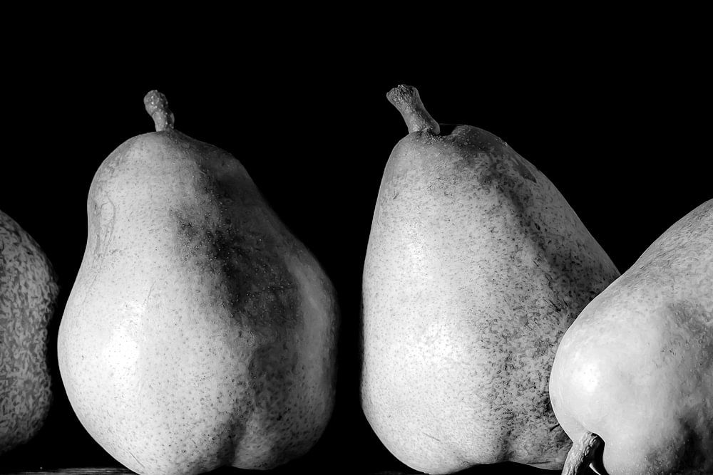 An art of pears in a row in black and white. Beautiful elegant design in fine art. Simple but beautiful to have large on the wall, fits anywhere in the home, kitchen and office.