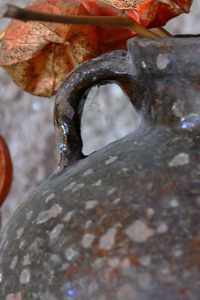 Still life with Physalis, a plant with orange lantern shaped flowers, in a French vase