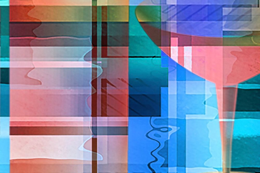 Still life with bottle and glass, cubist.