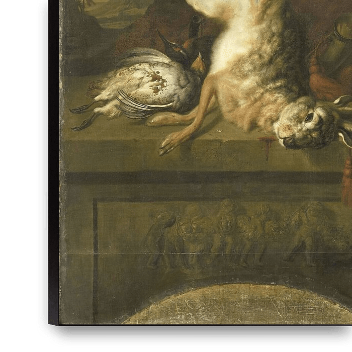 Buy Still life with dead hare and partridges, Dirk Valkenburg as a reproduction on canvas, ArtFrame, poster and wallpaper, printed on demand in high quality.