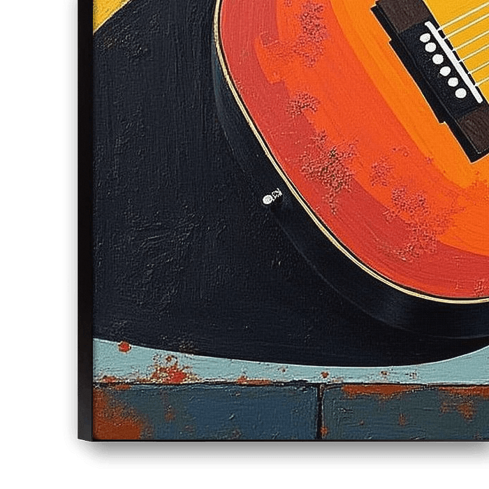 The mural "Still Life with Guitar" captures the harmonious combination of art and music. At the centre of the picture is a classical guitar placed on an artfully decorated table. Surrounded by a variety of vibrant still life elements such as fruit and flowers, the work conveys an atmosphere of cosiness and creativity. The warm colours and the play of light and shadow lend the picture an inviting depth, while the guitar in its elegant form radiates a subtle elegance. This still life invites the viewer to explore the relationship between music and life and to appreciate the beauty of the everyday.