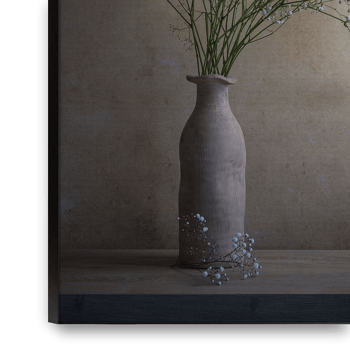 Buy this flower art Still life with gypsophilia in an earthen vase by John van de Gazelle fotografie on canvas, ArtFrame, poster and wallpaper, printed on demand in high quality.