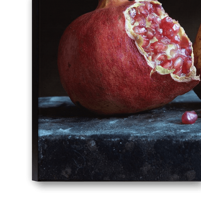 Buy the photo Still life with pomegranate apple and pear by Jennie Schotman on canvas, ArtFrame, poster and wallpaper, printed on demand in high quality.