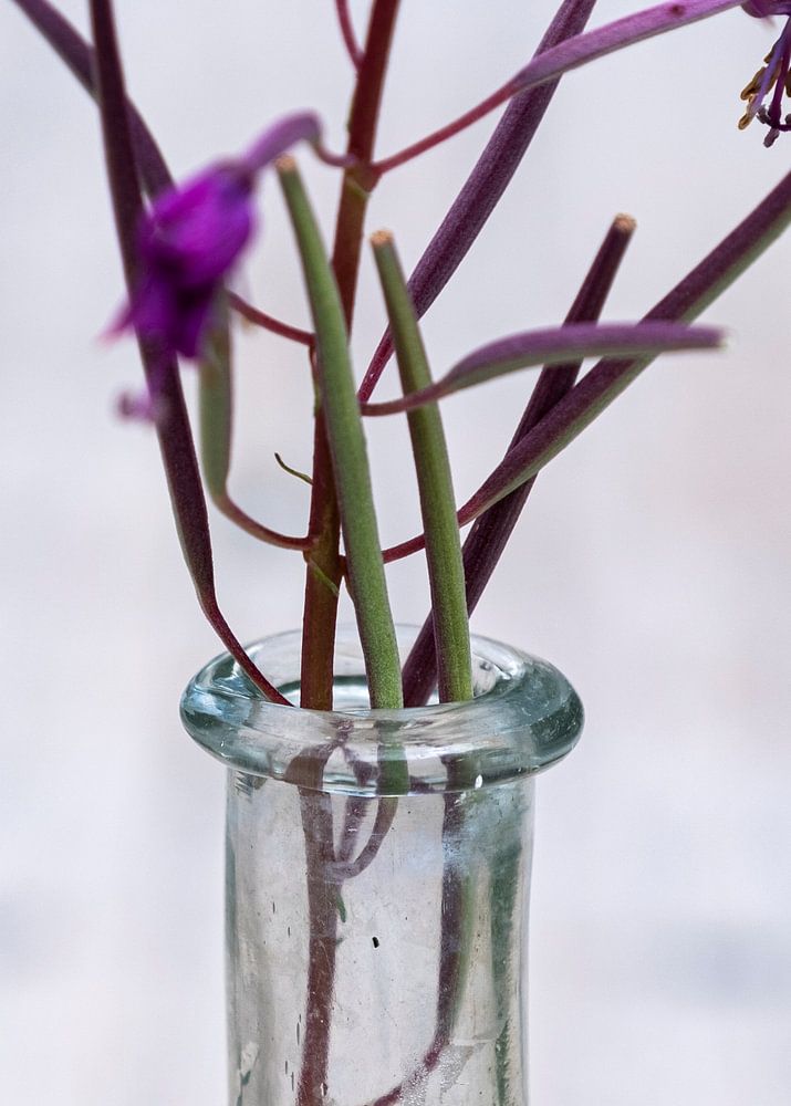 Also (un)herb can bloom in beautiful colors. Here fuchsia colored flowers in an antique medicine bottle