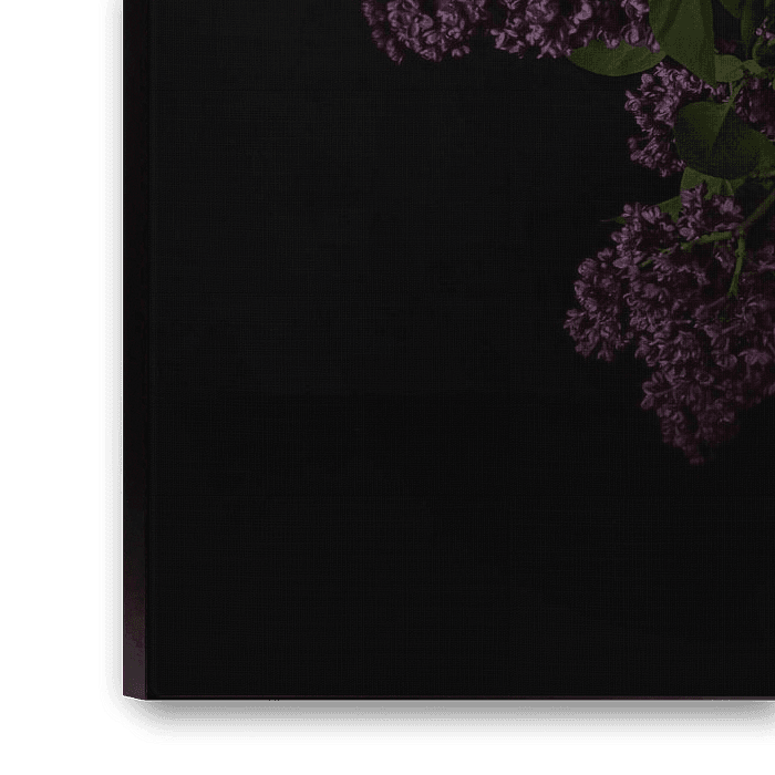 Still life with purple lilacs with Caravaggio light. A mysterious still life that brings an artistic atmosphere to your room, but also nice as wallpaper.