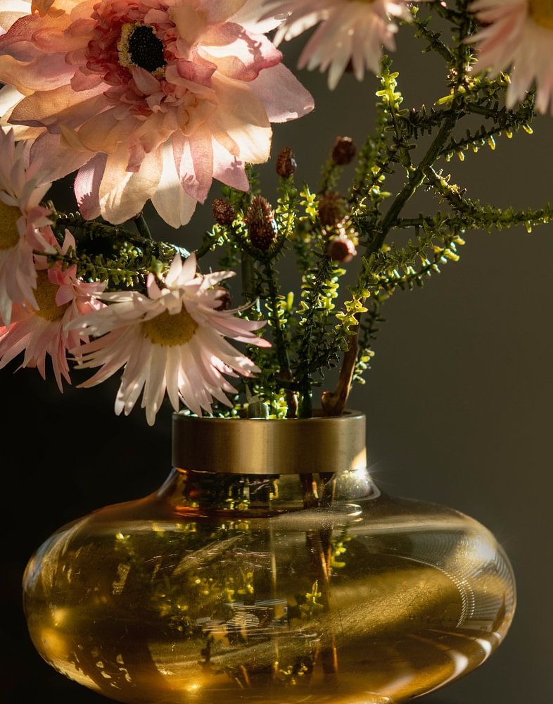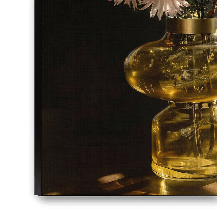 With the sparkling colours in pretty shades of pink together with the cognac-coloured vase, this still life will not get boring any time soon.