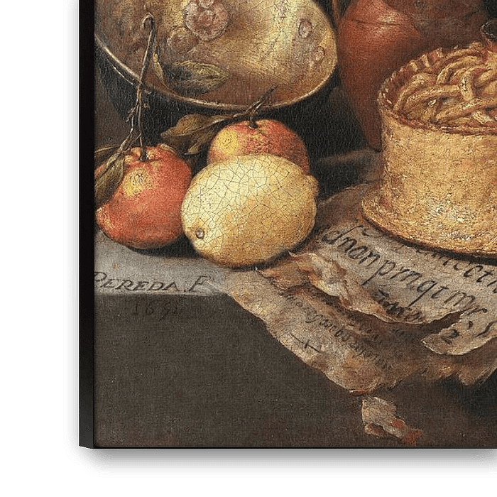 This painting, which arrived in Portugal as part of the personal collections of Queen Carlota Joaquina, reveals the painter’s virtuosity, both in the scenographic arrangement of the objects in successive diagonals and the naturalistic treatment that he gives to the textures and the effects of the light.