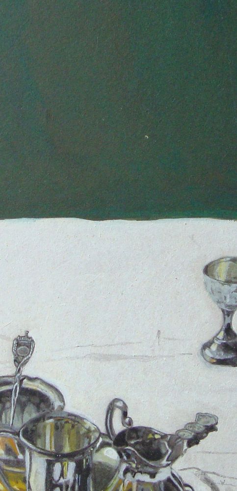 Een realistische stilleven geschilderd met acryl op paneel.