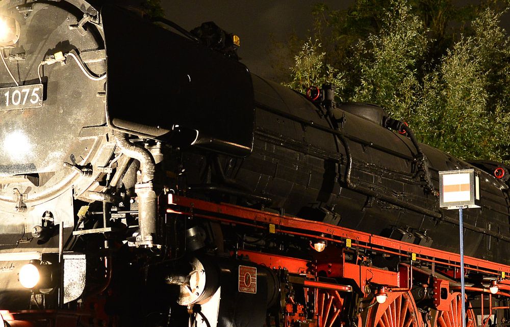 Stoomtrein onder stoom gefotografeerd tijdens de Nachtparade bij Stoom Stichting Nederland.