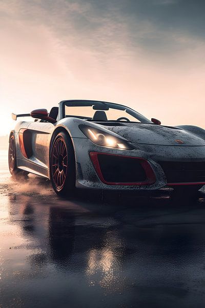 This open-top Porsche Carrera GT wears its grit like a badge of honor. Covered in road spray and mud, the car stands resilient under a pale sky. It’s a raw, authentic tribute to the joy of driving hard, no matter what the weather brings.